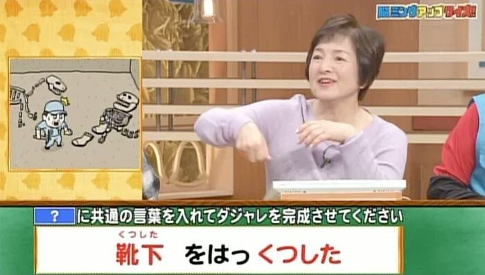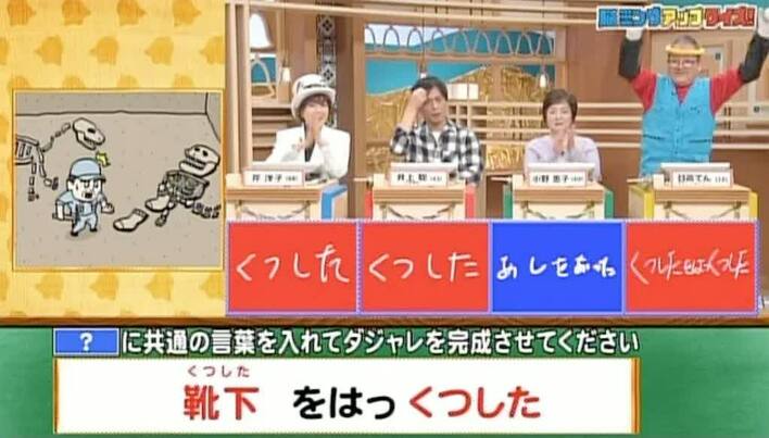 正解は「くつした(靴下を発掘した)」。 芹さん、井上さん、日高さんの3人が正解!
