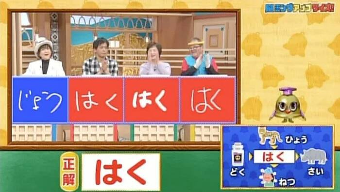 正解は「はく(独白・漂白・白菜・白熱)」。井上さん、小野さん、日高さんの3人が見事正解!
