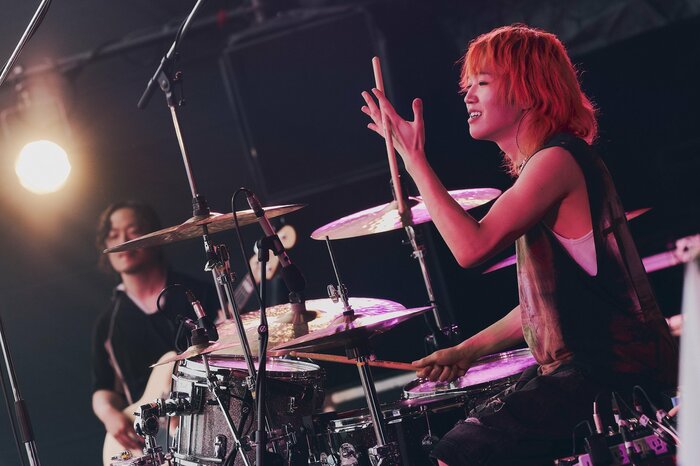 それぞれの楽器が奏でる強気な音色と歌声が合わさり、ライブでしか出せないロックテイストなナンバーで観客を魅了。ラストスパートに向けて、会場が盛り上がりを見せます。