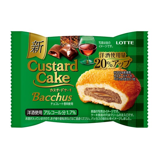 ・カスタードケーキでバッカスの味わいを表現した、洋酒香る大人のためのカスタードケーキです。洋酒使用量が20%アップ(※2)して、コニャック(※3)の熟成した芳醇な香りと洋酒感を堪能できます。