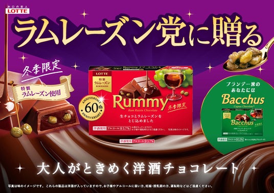 株式会社ロッテ(東京都新宿区、代表取締役社長執行役員:中島英樹、以下ロッテ)は、2025年10月7日(火)に、洋酒チョコレート市場売上No.1(※1)で、発売60周年を迎える「ラミー」と、「バッカス」を冬季限定で発売いたします。さらに、昨年好評だった「カスタードケーキ<バッカス仕立て>個売り」は洋酒使用量が20%アップ(※2)にバージョンアップして今年も発売いたします。この時期ならではの味わい、チョコレートとお酒の絶妙なハーモニーで、優雅な気分と贅沢な時間をお楽しみください。