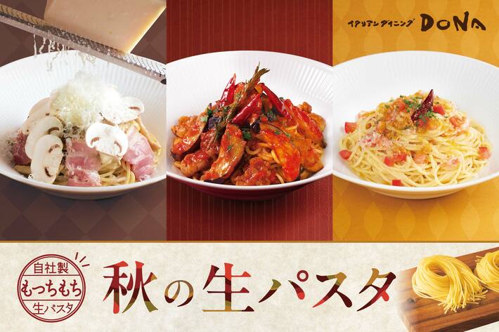 「椿屋珈琲」などを展開する東和フードサービス株式会社(本社:東京都港区/代表取締役社長CEO:岸野 誠人)は、本格イタリアンをカジュアルにお楽しみいただける「イタリアンダイニングDONA」にて、期間限定メニューを2025年9月19日(金)より販売いたします。