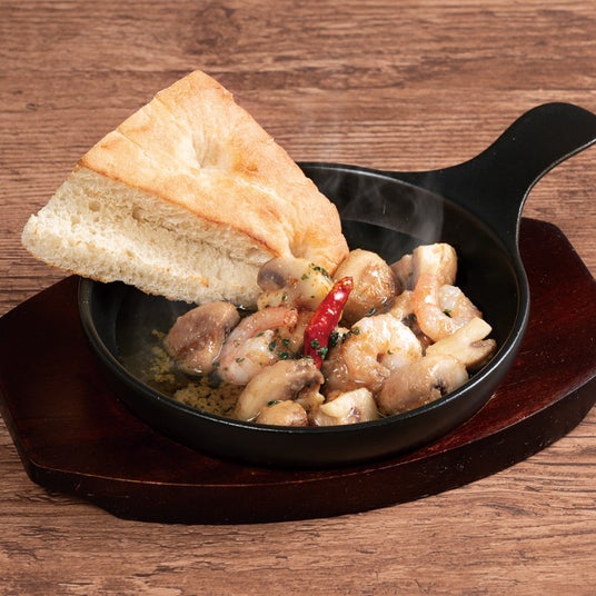 フレッシュな旬のマッシュルーム、削りたてのふわふわのパルミジャーノチーズをたっぷりとトッピングし、秋にぴったりの濃厚な味わいが完成しました。