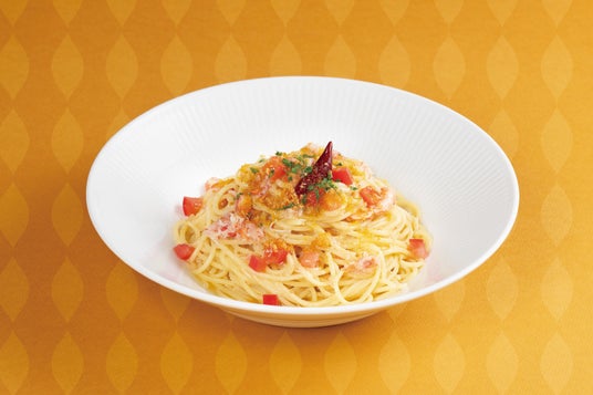 旨みたっぷりの紅ずわい蟹と、風味豊かな本からすみを贅沢に使用した大人のご褒美ペペロンチーノ。