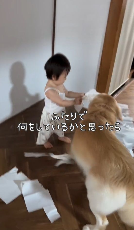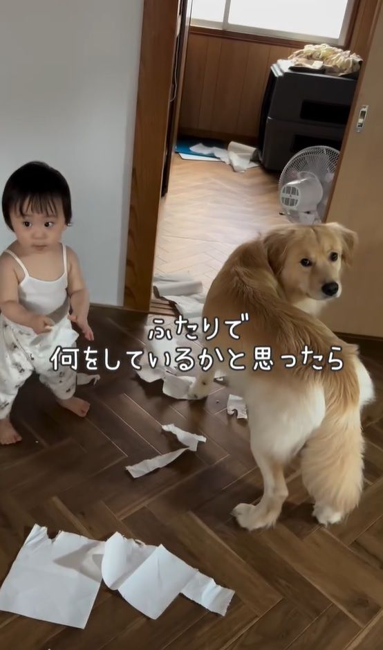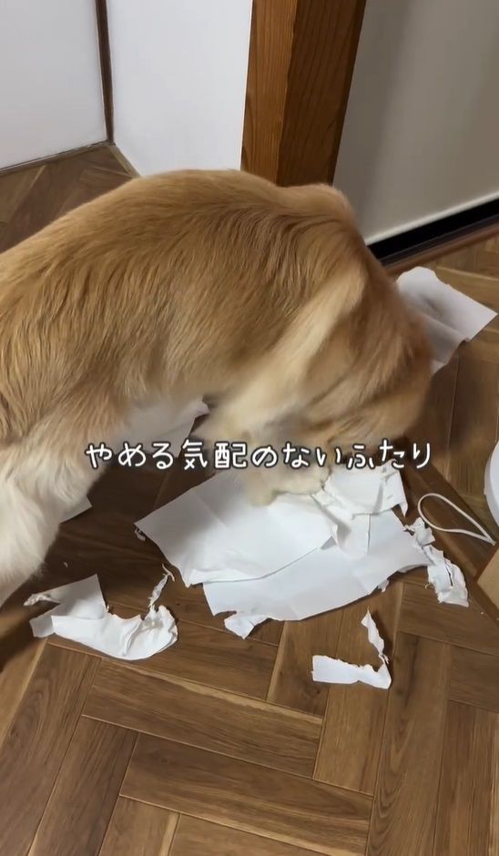 ちなみに、今回のイタズラの後は、家族みんなで散らばった紙を使って仲良く遊んだということです。