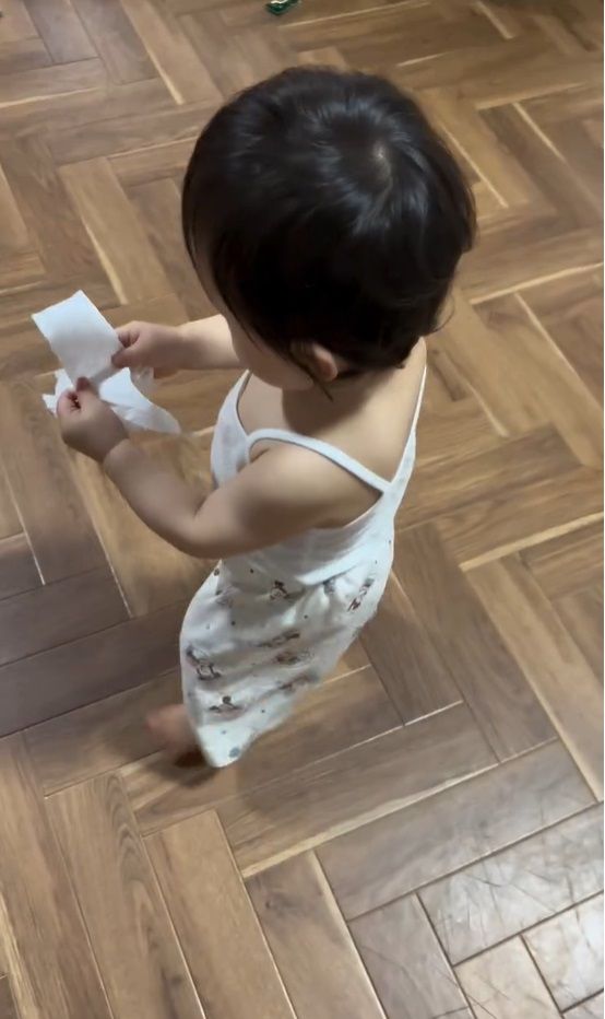 さらに、まあくんも紙を手に持ったままウロチョロ。こちらもやめる気配は全くなし!