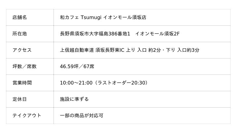 2025年10月3日(金)開業の「イオンモール須坂」は、約170の専門店が集結する長野県最大級の商業施設として注目を集めています。主要県道長野須坂インター線に接し、上信越自動車道の須坂長野東インターチェンジからも至近で、車でのアクセスが良好な立地のため、広域からの集客も期待できます。私たちツムギは「イオンモール須坂」に出店することで、新しいお客様との出会いを期待し、今回の出店に至りました。地域の皆様から愛される店づくりを目指して参ります。