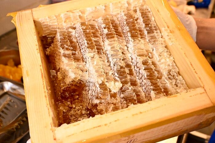 さらに、ミツバチが作った蜜ろうと、その中のはちみつを丸ごとそのまま食べることができる「ハニカムはちみつ」なども。日本ではあまり見かけることがない巣蜜ですが、韓国ではスーパーフードとして広く知られるトレンド食材で、ヨアジョンを代表するスペシャルトッピングです。