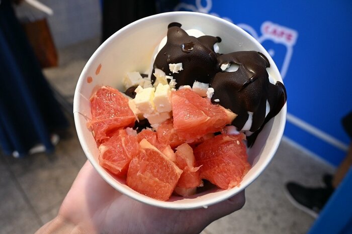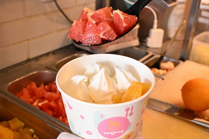 店長によると、朝食代わりとして食べられることもあるというヨアジョンは、新鮮なフルーツをトッピングとして選ぶお客さんがとても多いそう。