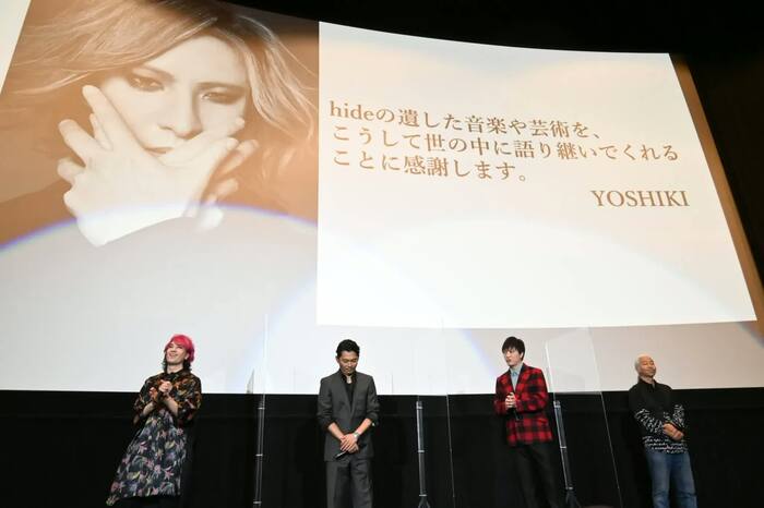 イベントでは、X JAPANのメンバーとしてhideさんと活動を共にしていたYOSHIKIさんから、映画完成をお祝いするコメントが読み上げられる場面も。