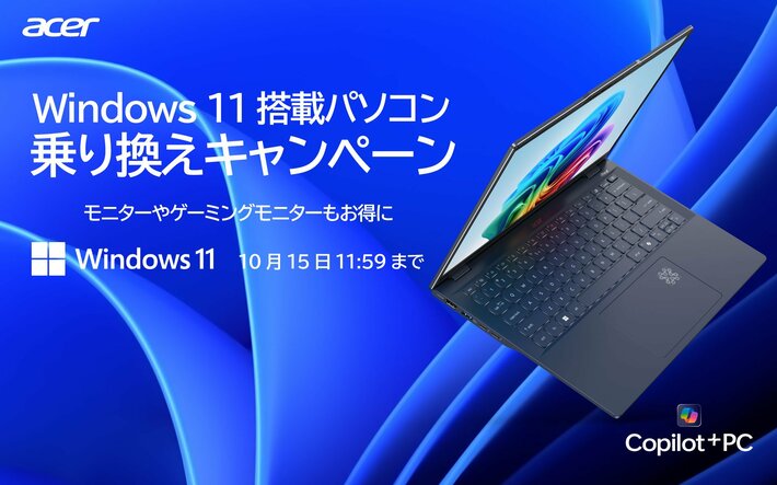 日本エイサー株式会社(本社:東京都新宿区、代表取締役社長:ボブ・セン)は、Acer公式オンラインストアにて、2025年9月18日(木)より10月15日(水)までの期間限定で、**「Windows 11乗り換えキャンペーン」**を開催いたします。