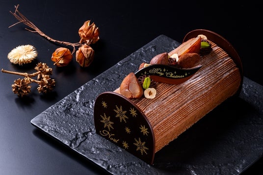 ショコラスポンジのなかにまろやかなマロンクリームとキャラメル味のオレンジピールが入った、冬らしい味わいのロールケーキ。コクのある甘さとカカオの芳醇な香りが、オレンジピールのアクセントとともに口の中に広がります。