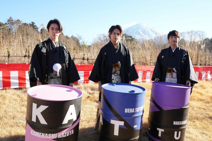 「僕たちKAT-TUN一同は」(3人)「2024年も歩みを止めず、僕たちらしく前向きに活動し」(中丸さん)「メンバー同士、尊敬の念と協調性を持って文句を言わず」(上田さん)「最高のエンターテインメントをお届けすることを誓います!」(亀梨さん)と声を合わせました。