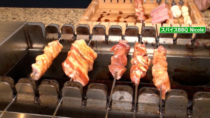 こちらのお店では、うまみを引き立たせるためカイエンペッパーなどのスパイスを揉み込んだ鶏ももやセセリなどのお肉を、自動で回転する卓上のグリルで焼くことで、香ばしく熱々のジューシーな串焼きがいただけます。