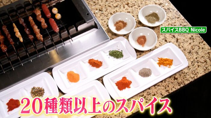 さらにこのお店最大の特徴は、カルダモンやカレーパウダーなど、20種類以上のスパイスが盛り放題!お肉につけて一緒にいただくことができます。