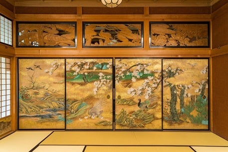 この襖絵は、遠くロンドンの大英博物館が所蔵する襖絵と対をなす作品であることが近年判明したものでとても話題となりました。本ツアーでは、宮越家が所蔵する「春景花鳥図」と、大英博物館所蔵作品を精巧に再現したレプリカ「秋冬花鳥図」がともに展示され、約150年ぶりとなる奇跡の「再会」を果たした空間を鑑賞できる、またとない機会となります。