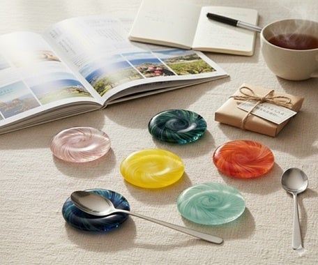 フェリシモが販売する限定ツアーでは、ご参加いただくみなさまへのおもてなしとして、旅立ちの前に、青森の伝統工芸品「津軽びいどろ」のカトラリーレストをご自宅へお届けします。※津軽の豊かな自然や職人の情熱が映し出されたような、色とりどりのガラスのきらめき。津軽の職人が一つひとつ手づくりした、同じものが二つとない特別な一品です。まずはご自宅で、青森の手仕事のぬくもりに触れ、旅への期待に胸をふくらませる、そんな豊かな『旅マエ』の時間をお過ごしください。