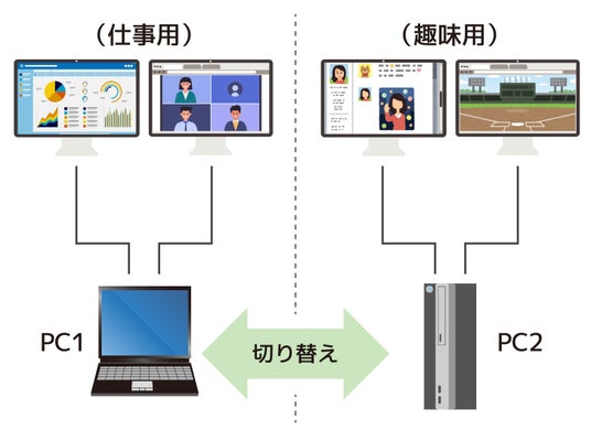 ・キーボード、ディスプレイ、マウスを2台のパソコンで切り替えて快適操作
