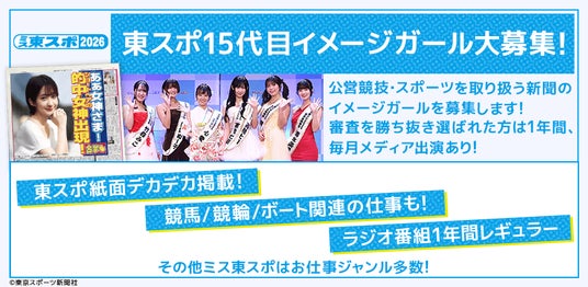 東京スポーツ新聞社の15代目イメージガール「ミス東スポ2026」を決めるオーディションを開催いたします。