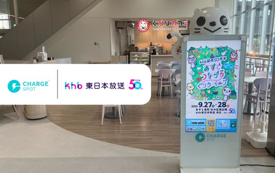 モバイルバッテリーのシェアリングサービス「ChargeSPOT(R)(チャージスポット)」を運営する株式会社INFORICH(本社:東京都渋谷区、代表取締役 Group CEO:秋山 広宣、以下 INFORICH)は、株式会社東日本放送(所在地:宮城県仙台市、代表取締役社長:藤ノ木 正哉、以下 khb)の本社ロビーに、khbマスコットキャラクター「ぐりり」のバッテリースタンドを設置いたします。