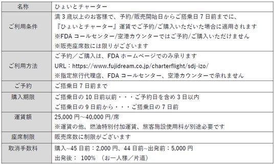 運 賃 額:『ひょいとチャーター』運賃 25,000円~40,000円/席