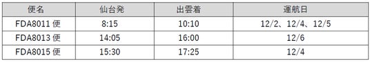 この機会にFDAのチャーター便で、仙台、出雲へお出かけください。
