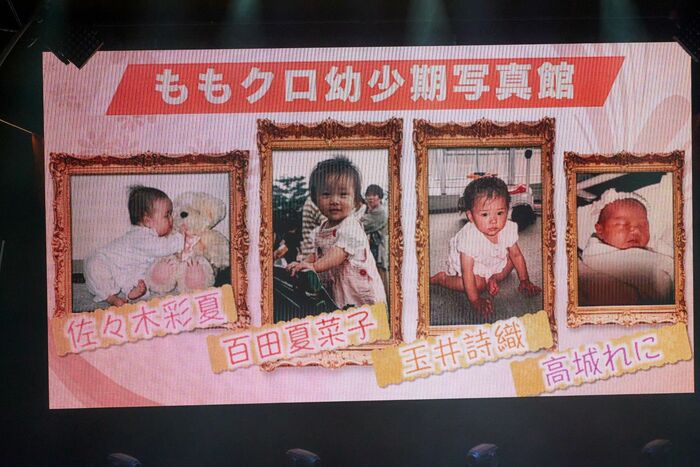 そして、メンバーの“およそ30年前”の写真が披露されると、客席から「わーーー!かわいい!」の声が。なぜか高城さんだけ生後1カ月もたっていない新生児の写真で「マネージャーさんにうまれたての、って言われたんです、話がちがーう!」と会場の爆笑をさらっていました。