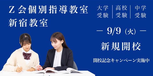 株式会社増進会ホールディングス(Z会グループ)のグループ会社である株式会社Z会エデュースは、完全1対1個別指導「Z会個別指導教室 新宿教室」を9月9日に開校しました。