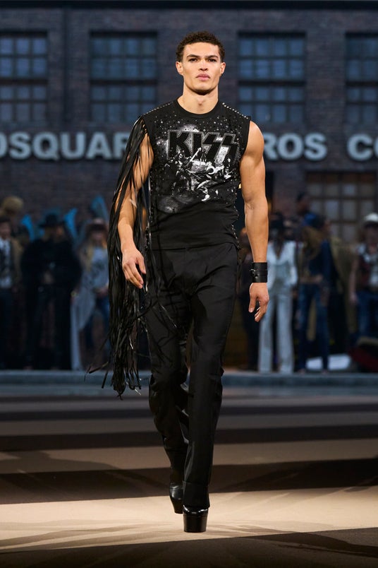 更に2つのブランドとのコラボレーションをしており、イタリアのバイクメーカーDUCATI(ドゥカティ)とは、DUCATIのスタイル・洗練性・性能という価値観とDSQUARED2のハイブリッドなエレガンスを融合しました。バンドのKISS(キッス)とは、1975年の伝説的なツアー「Alive!」のグッズに着想を得たグラムロックのノスタルジアを表現しています。