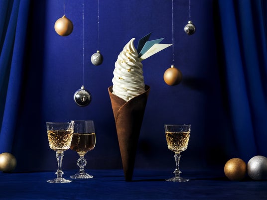 ツイスト状に重ねた軽やかなクリーム層の中には、苺のロールケーキを入れ、果実の爽やかな酸味とスポンジのやさしい甘みを楽しめる仕立てに。さらに、ワッフルコーンの内側には、フランス産ヴァローナ社のチョコレートを用いたナッツとフレークを敷き詰め、濃厚なチョコレートクリームと合わせて贅沢な味わいに仕上げました。