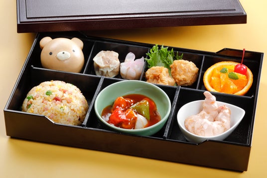鶏肉の唐揚げ / 焼売 / 海老のマヨネーズソース / 酢豚 / 五目チャーハン / くまチョコまん / フルーツ