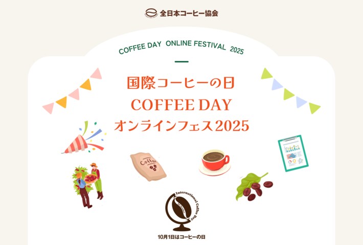 一般社団法人全日本コーヒー協会(会長:柴田 裕)は、10月1日の「国際コーヒーの日(International Coffee Day)」から1か月間にわたり、COFFEE DAY オンラインフェス2025をウェブ上で開催します。