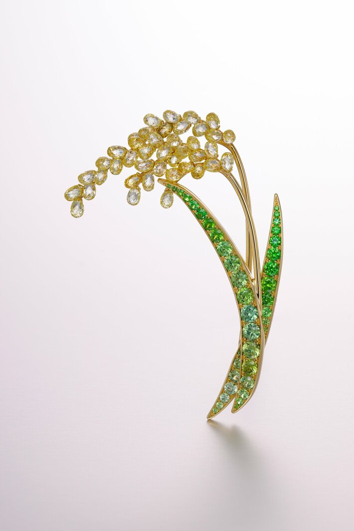 稲穂ブローチ(18K イエローダイヤモンド、デマントイドガーネット)