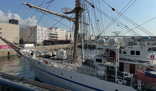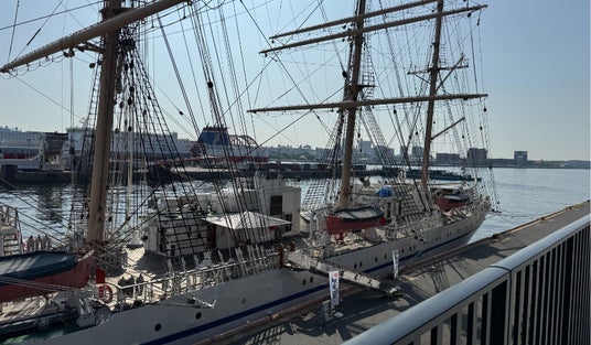 10/4までGアリ横の東側岸壁に、練習帆船「日本丸」が停泊中です。