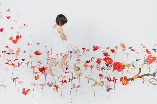 一人ひとりのやさしさエピソードを集めてひとつの作品として完成させる参加型ワークショップ。自分の好きな色でお花をつくり、やさしさエピソードを書いた葉っぱを組み合わせ、自分だけのお花を作ります。