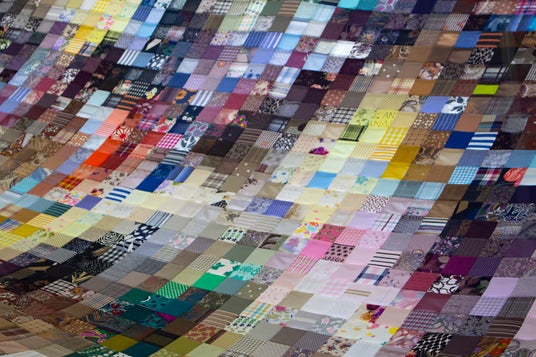 テラスモール湘南に訪れる方々から募集した古着から生まれたパッチワーク作品です。