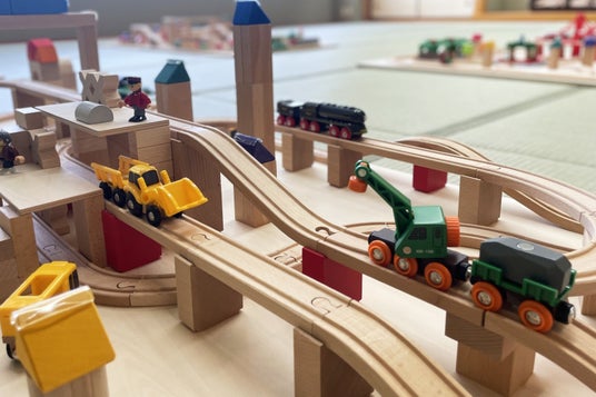 木製レールを中心に広がる、列車のおもちゃの世界。「つなげて広げて、君が思い描く自由な街づくりを」をテーマに、レールを自由自在にレイアウトし、自分だけの街づくりができます。すぐに遊べる既存のレールエリアも用意しているので、初めての方も安心して楽しめます。