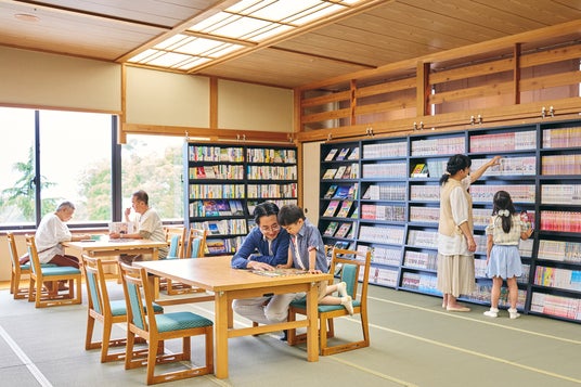 靴を脱いでくつろげるよう畳が敷かれた和のぬくもりを感じる空間で、窓の向こうには富士山を望む壮大な景色が。小説や写真集、絵本やコミックなど八ヶ岳に関連する書籍を中心に約4,000冊を取り揃え、オセロやとんとん相撲、福笑いなどを備えた昔遊びコーナーやボードゲームなど、三世代の家族で楽しめるアイテムも用意。すべての宿泊者が利用可能で、スパークリングワインや赤・白ワイン、ビール、ソフトドリンクやお菓子も提供します。