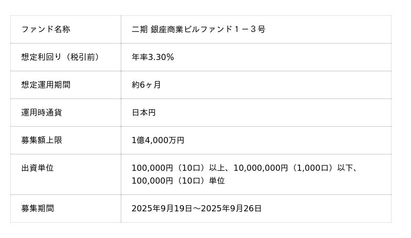 「未来をわかちあう投資」を提供する「Funvest(ファンベスト)」(以下、Funvest)は、「二期 銀座商業ビルファンド1-3号」(以下、本ファンド)の募集を9/19より開始しますので、お知らせいたします。