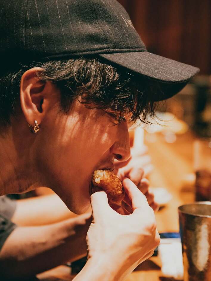 2枚目の写真では、おいしそうな手羽先を両手で持って、がぶっと豪快にかぶりつく佐藤さんの横顔も。