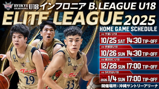 2025年9月より開催されている「インフロニア B.LEAGUE U18 ELITE LEAGUE 2025」に出場しているキングスU18は10月から2026年1月にかけて、千葉J U18、宇都宮U18、 横浜BC U18、SR渋谷U18を沖縄サントリーアリーナに迎えます。