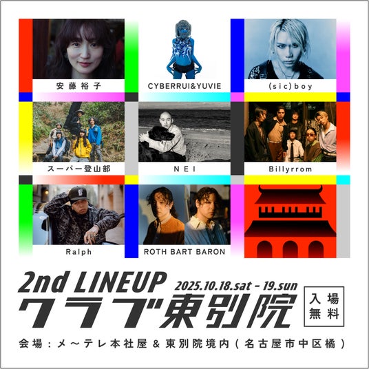2018年に名古屋の円頓寺商店街で始まった“クラブシリーズ”の最新作「クラブ東別院」。今年もクラブ東別院がお届けする音楽ライブ「クラブ東別院 in ドデ祭2025」を、メ~テレ本社屋&東別院境内にて開催します!コアファンからファミリーまで、それぞれのスタイルで自由に楽しめる音楽ライブ。入場は無料です。第3弾アーティスト・日割りは、本日9/19(金)18時に公開予定です。