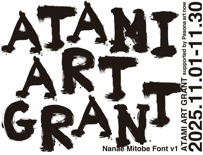 「ATAMI ART GRANT 2025 supported by Pasona art now」のキービジュアルには画家の水戸部七絵が発表したオリジナルフォントNFT「Nanae Mitobe Fonts V1」を採用したデザインとし、アーティストによってつくられる芸術祭を体現します。こちらのビジュアルを芸術祭グッズに展開した販売も予定しております。