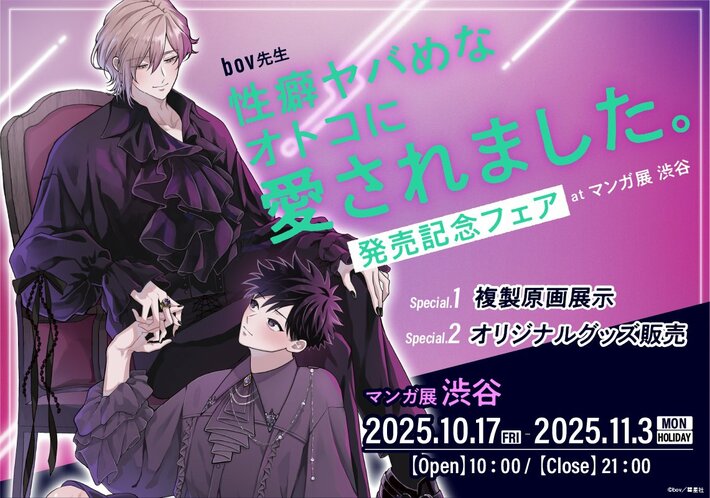 bov先生の新刊『性癖ヤバめなオトコに愛されました。』の発売を記念して、マンガ展にてフェア開催が決定!
