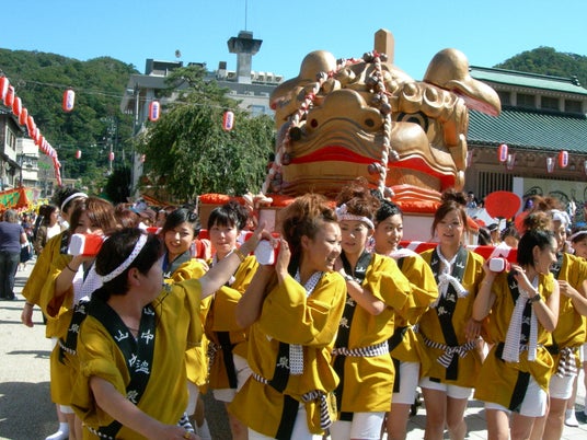 ふだんは落ち着いた風情を見せる湯のまちも、この期間だけは華やぎに満ち、民謡「山中節」のふるさとにふさわしい唄と踊りの熱気に包まれます。町民や芸妓衆、そして温泉を訪れる浴客が一体となり、華やかな舞と音楽が織りなす一大絵巻は、山中温泉の秋を象徴する風物詩です。さらに昼間には、掛け声も勇ましい「恋来いみこし(女性みこし)」や「若衆みこし」、そして迫力ある「大獅子」の巡行が繰り広げられ、街全体が祭り一色に染まります。