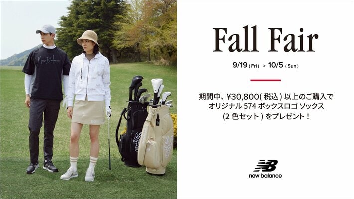 9月19日(金)~10月5日(日)までの期間中、1レシート ¥30,800 (税込)以上のご購入のお客様に New Balance Golf 「574 ボックスロゴ ソックス(2色セット)」をプレゼントいたします。