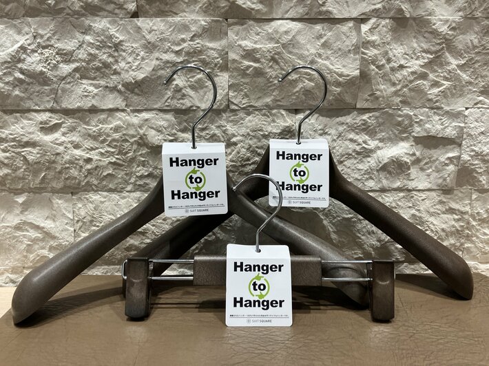 青山商事株式会社(本社:広島県福山市/代表取締役社長:遠藤 泰三)は、環境負荷軽減を目的とした資源循環の取り組みとして、洋服の青山、SUIT SQUARE(スーツスクエア)の店舗で使用していた破損および不要になったプラスチックハンガーを原料とした販売用の水平リサイクルハンガー(約9,000本)を初めて作製し、9月20日(土)から「SUIT SQUARE」全店(37店舗)で販売を開始します。