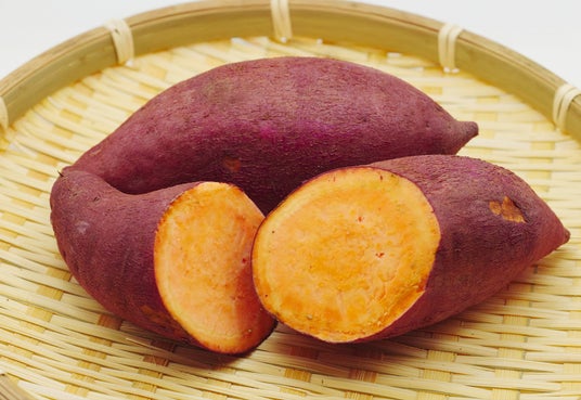 一見普通のさつまいもですが、カットすると果肉はカボチャのように鮮やかなオレンジ色で、βカロテンを豊富に含みます。