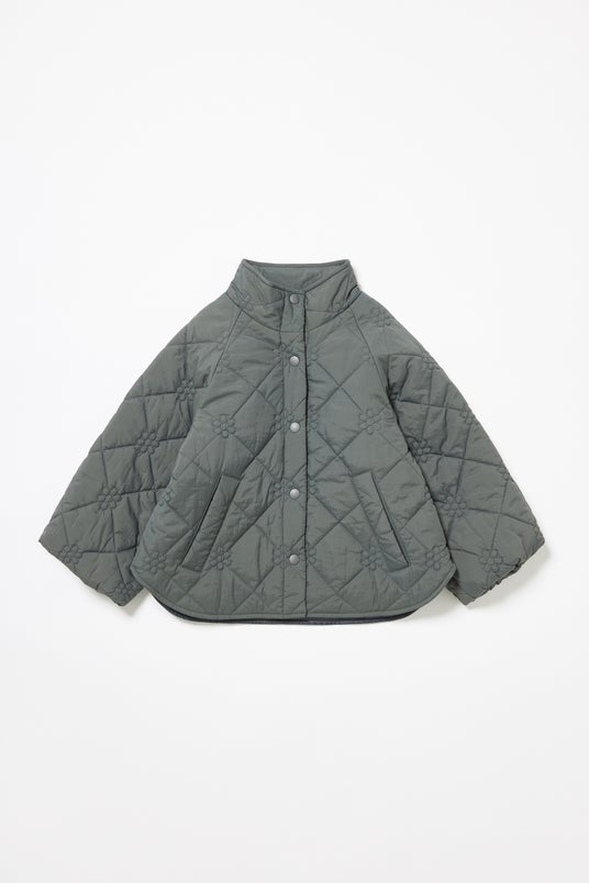 花柄のキルト、ふっくらしたボリューム袖とAラインシルエットがポイントのブルゾンは、冬のコーディネートの主役級アウター。