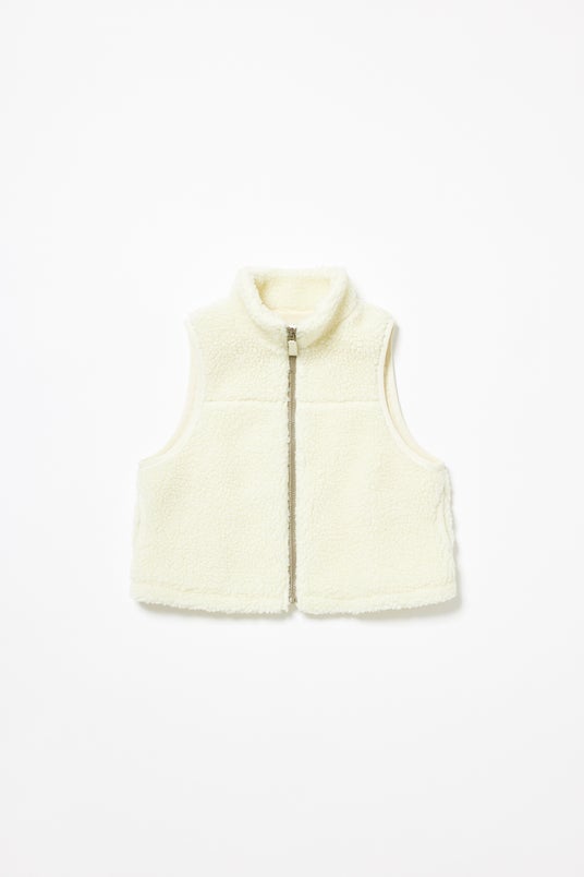 パーカーや薄手のアウターに重ねてももたつかないボアベスト。旬のふんわりボア素材は着こなすだけでかわいい一着。一枚でコーデの幅がぐんと広がります。